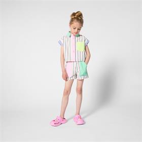 Striped cotton shorts, 3 contrasting pockets, adjustable waist with fly closure.