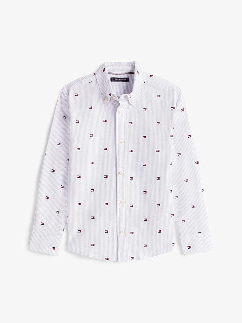 Cette chemise classique en coton Oxford extensible est un véritable hommage à la marque. Elle est rehaussée d'un motif à rayures Ithaca intemporel et de drapeaux brodés.