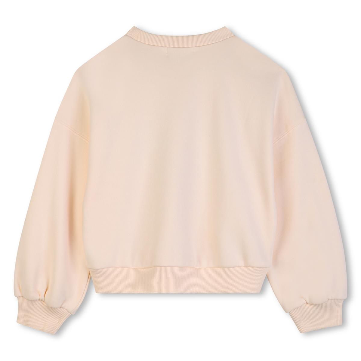 Fleece sweatshirt, geribbelde halslijn, manchetten en onderkant, illustratie met pailletten op de voorkant