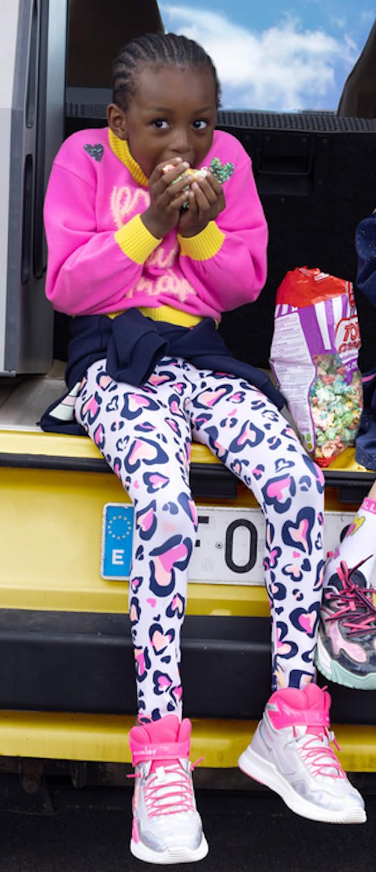 Pull fin en tricot avec illustration devant avec fils fantaisie et coeurs en sequins, encolure et le bas sont contrastés en couleur, étiquette rayée